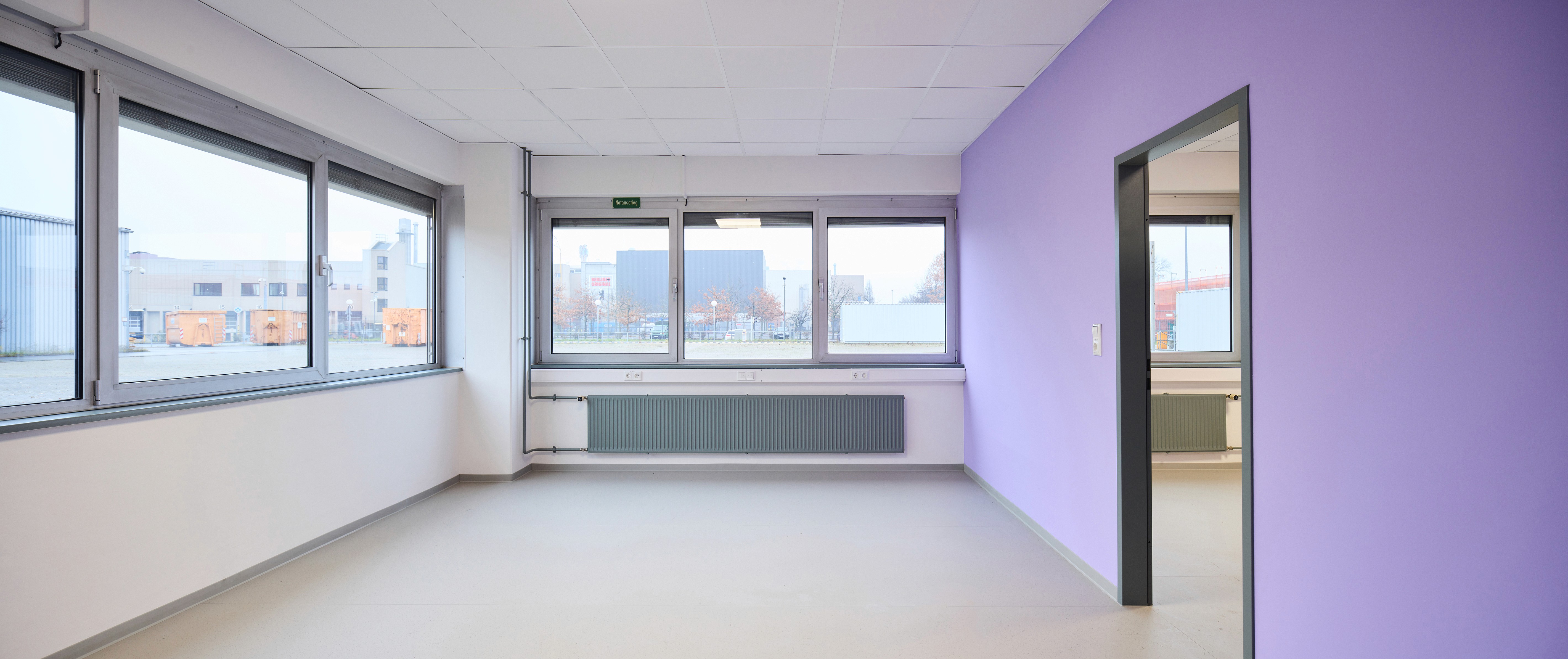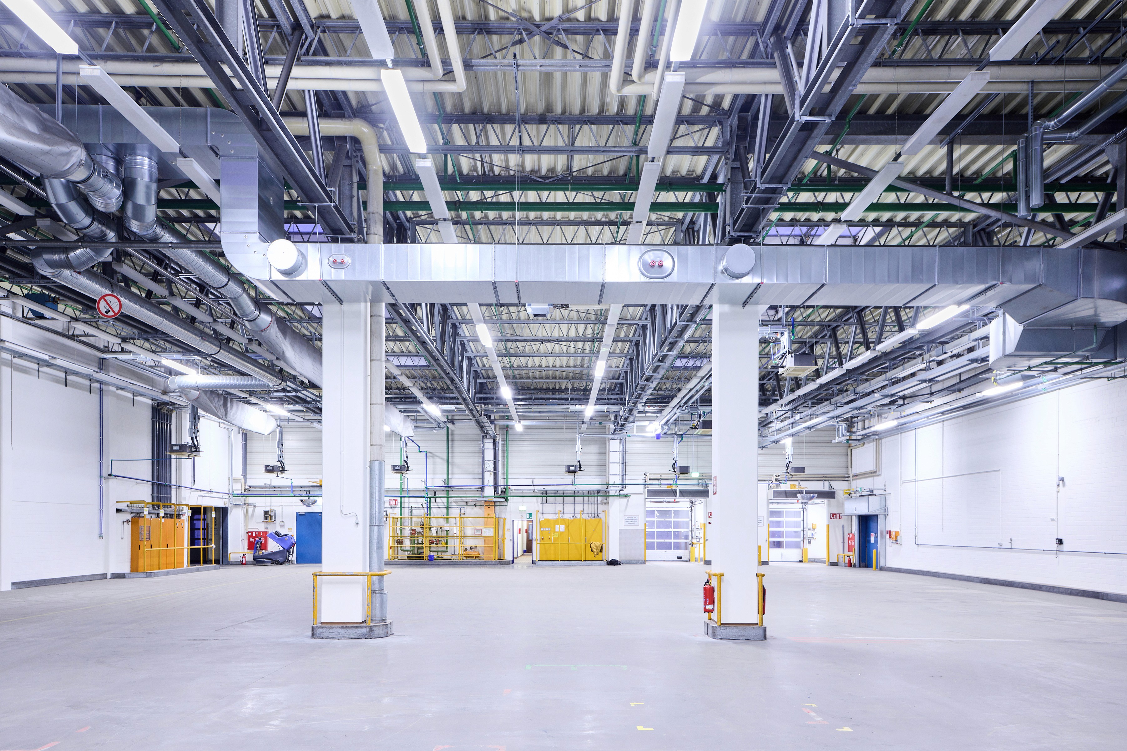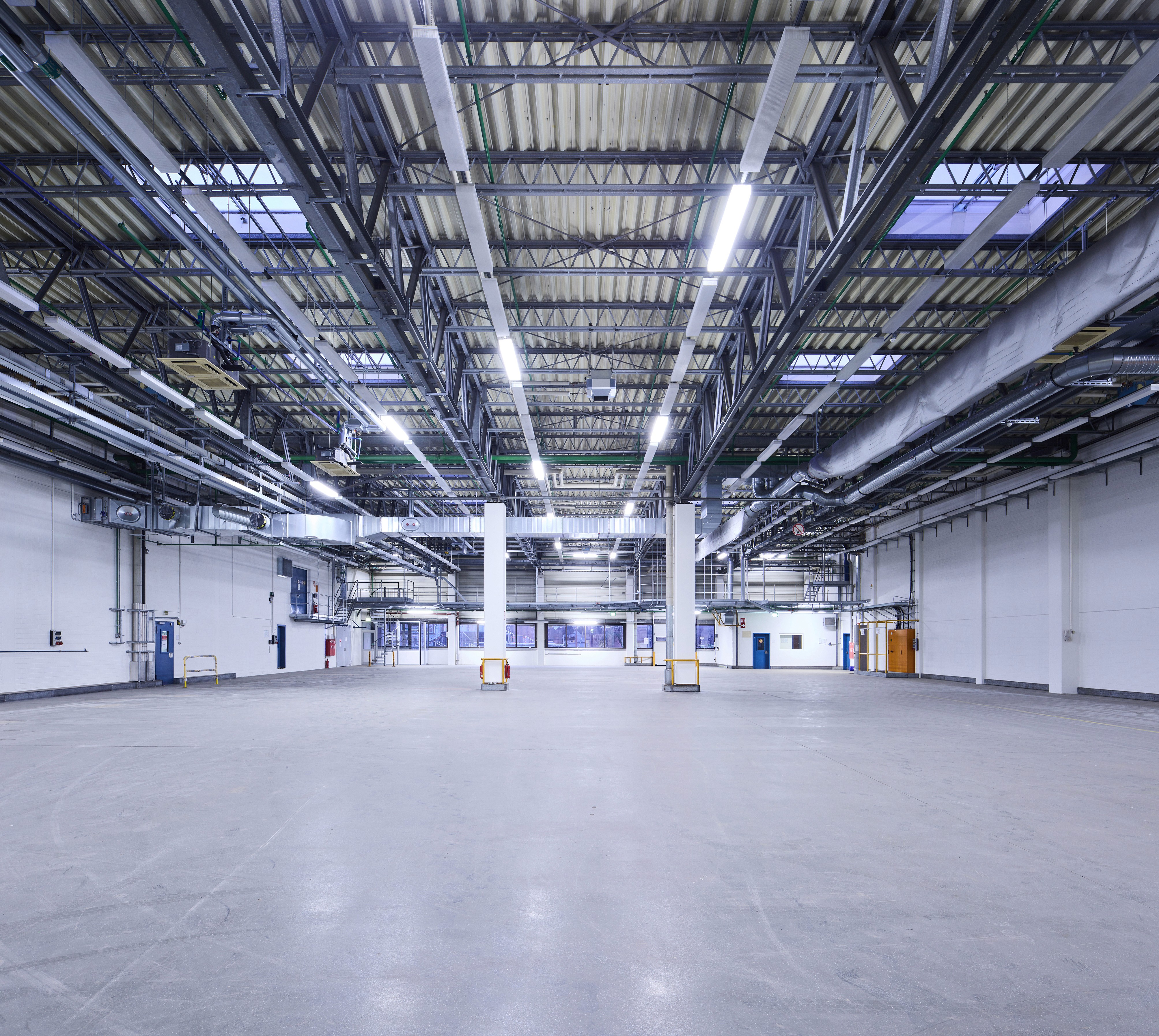 Large, light-filled production hall split into 4 zones. Direct logistics access.